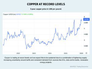 Copper prices have set historic highs for the second time in six months, replicating the price spike in June, July 2025.